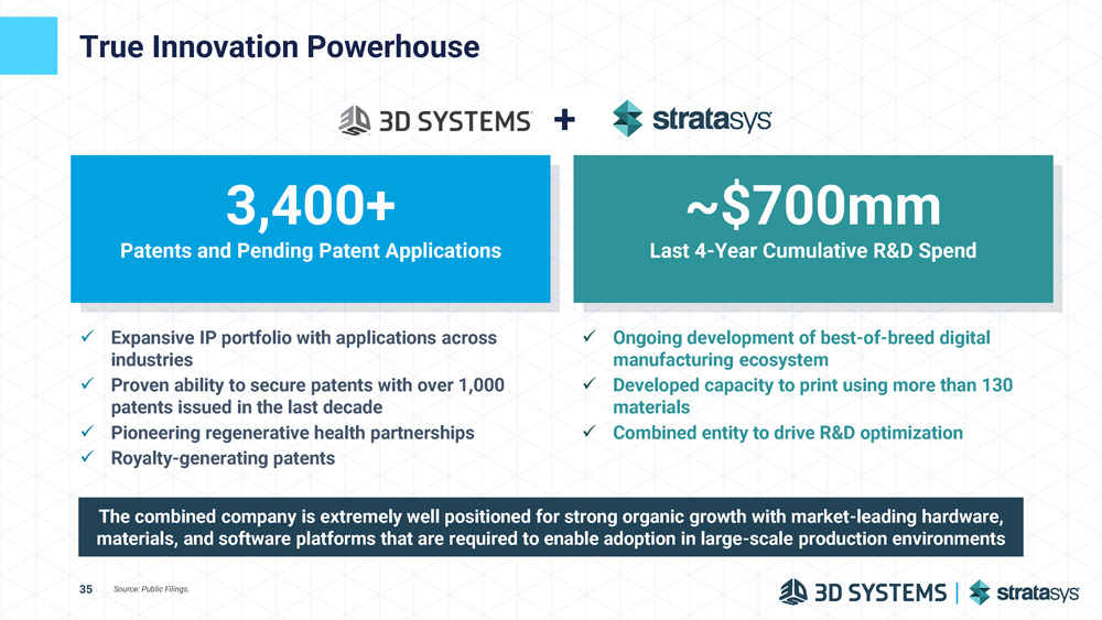 True Innovation Powerhouse + ~$700mm Last 4 - Year Cumulative R&D Spend 3,400+ Patents and Pending Patent Applications x Ongoing development of best - of - breed digital manufacturing ecosystem x Developed capacity to print using more than 130 materials x Combined entity to drive R&D optimization x Expansive IP portfolio with applications across industries x Proven ability to secure patents with over 1,000 patents issued in the last decade x Pioneering regenerative health partnerships x Royalty - generating patents 35 The combined company is extremely well positioned for strong organic growth with market - leading hardware, materials, and software platforms that are required to enable adoption in large - scale production environments Source: Public Filings.