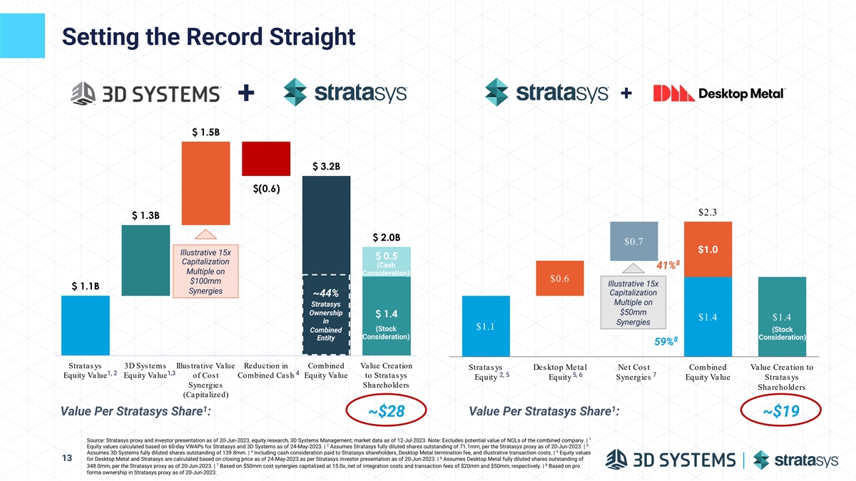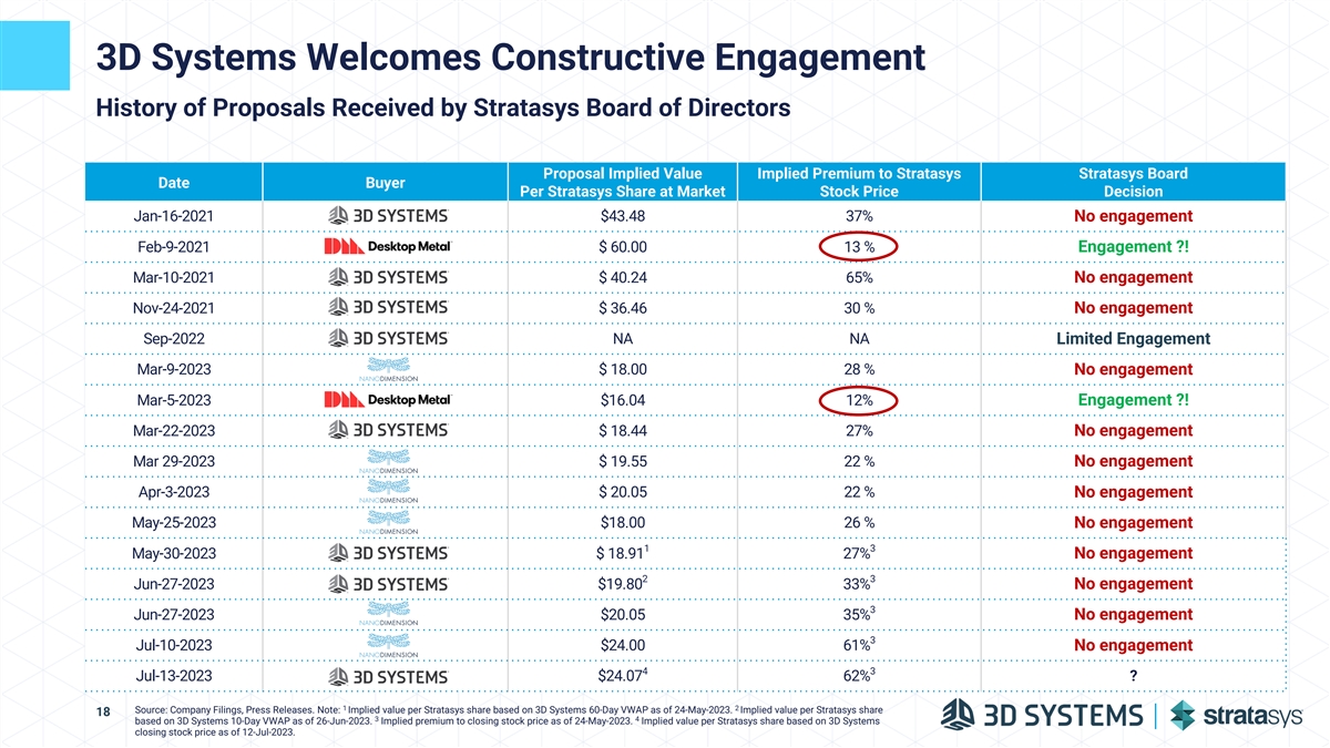 | | Represents a ~15% improvement to 3D Systems proposal submitted to the Stratasys Board on May 30, 2023. |