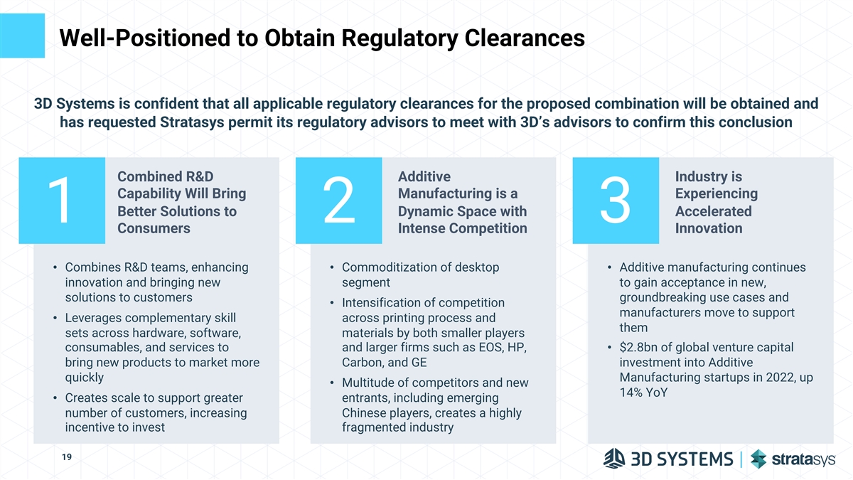 This communication does not constitute an offer to buy or sell or the solicitation of an offer to sell or buy any securities. This communication relates to a proposal which 3D Systems has made for a business combination with Stratasys. In furtherance of this proposal and subject to future developments, 3D Systems (and, if a negotiated transaction is agreed, Stratasys) may file one or more registration statements, proxy statements or other documents with the SEC. This communication is not a substitute for any proxy statement, registration statement, prospectus or other document that 3D Systems and/or Stratasys may file with the SEC in connection with the proposed transaction.