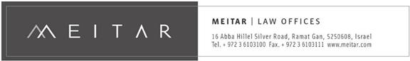 Members of our firm are admitted to the Bar in the State of Israel, and we do not express any opinion as to the laws of any other jurisdiction. This opinion is limited to the matters stated herein and no opinion is implied or may be inferred beyond the matters expressly stated.
