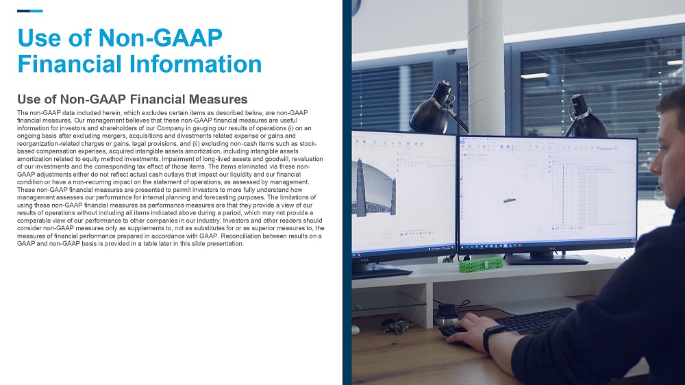 Use of Non - GAAP Financial Information Use of Non - GAAP Financial Measures The non - GAAP data included herein, which excludes certain items as described below, are non - GAAP financial measures. Our management believes that these non - GAAP financial measures are useful information for investors and shareholders of our Company in gauging our results of operations (i) on an ongoing basis after excluding mergers, acquisitions and divestments related expense or gains and reorganization - related charges or gains, legal provisions, and (ii) excluding non - cash items such as stock - based compensation expenses, acquired intangible assets amortization, including intangible assets amortization related to equity method investments, impairment of long - lived assets and goodwill, revaluation of our investments and the corresponding tax effect of those items. The items eliminated via these non - GAAP adjustments either do not reflect actual cash outlays that impact our liquidity and our financial condition or have a non - recurring impact on the statement of operations, as assessed by management. These non - GAAP financial measures are presented to permit investors to more fully understand how management assesses our performance for internal planning and forecasting purposes. The limitations of using these non - GAAP financial measures as performance measures are that they provide a view of our results of operations without including all items indicated above during a period, which may not provide a comparable view of our performance to other companies in our industry. Investors and other readers should consider non - GAAP measures only as supplements to, not as substitutes for or as superior measures to, the measures of financial performance prepared in accordance with GAAP. Reconciliation between results on a GAAP and non - GAAP basis is provided in a table later in this slide presentation. 4