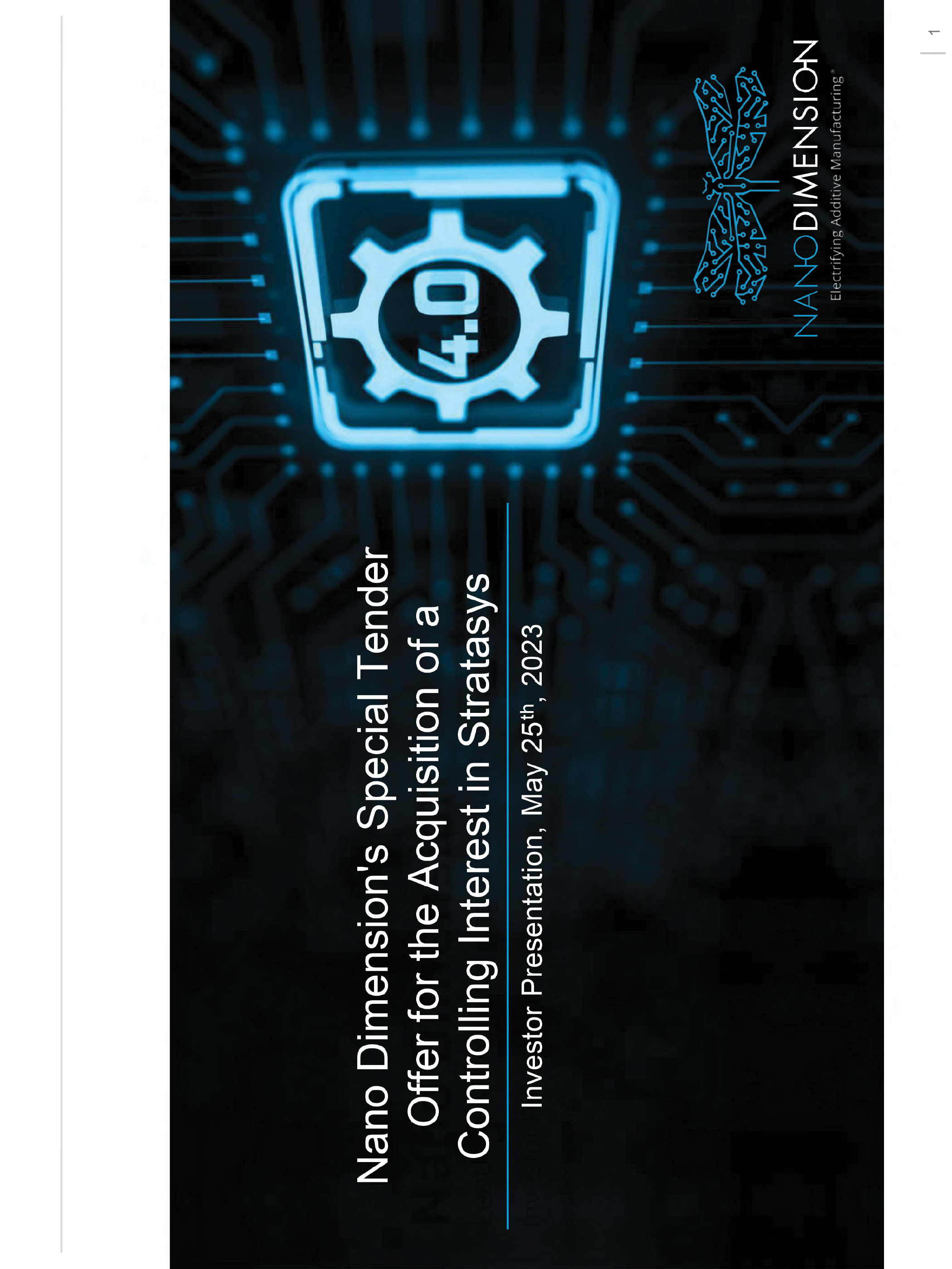 Nano Dimension’s Special Tender Offer for the Acquisition of a Controlling Interest in Stratasys Investor Presentation, May 25th, 2023