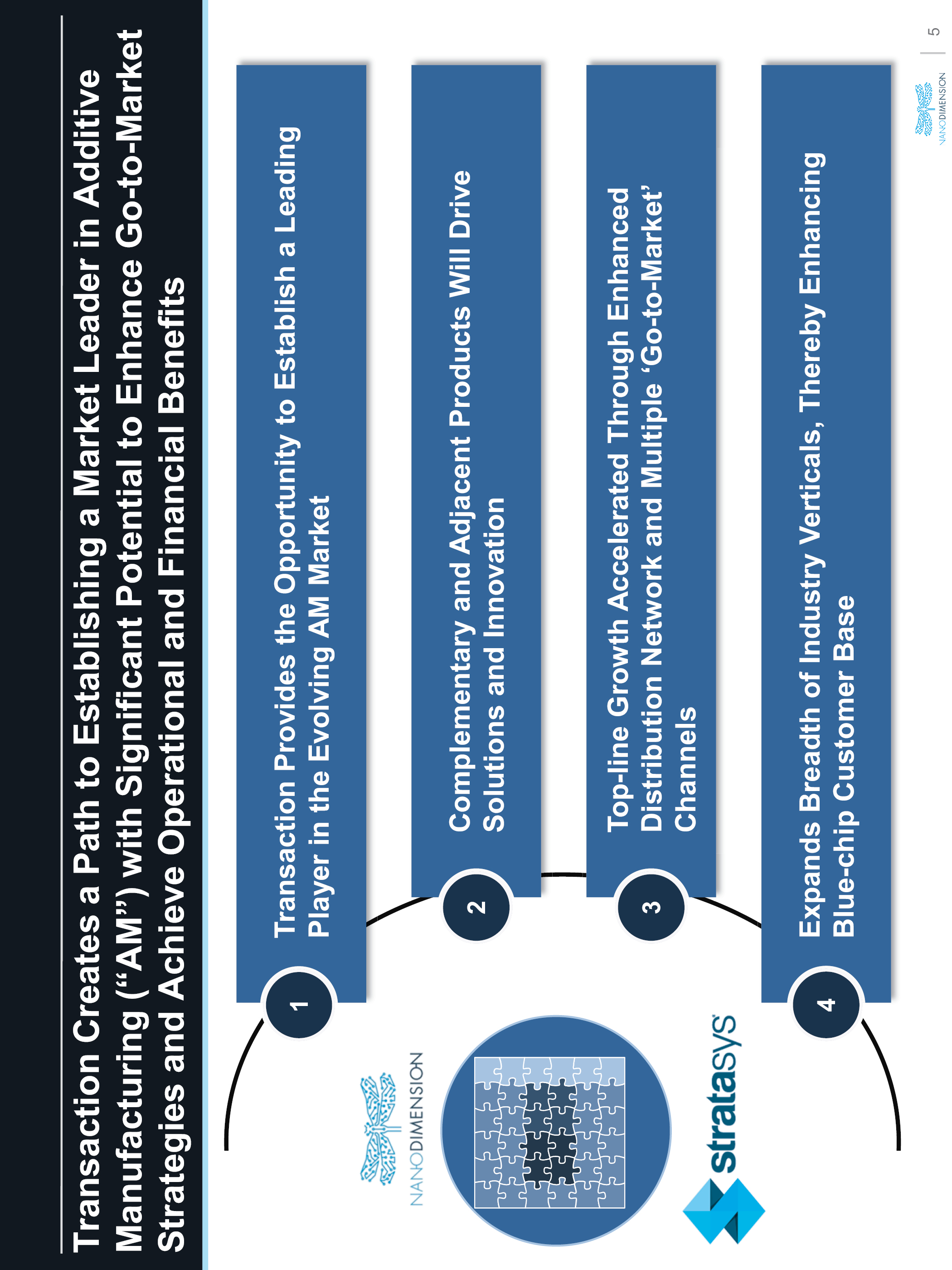 Transaction Creates a Path to Establishing a Market Leader in Additive Manufacturing (“AM”) with Significant Potential to Enhance Go-to-Market Strategies and Achieve Operational and Financial Benefits Transaction Provides the Opportunity to Establish a Leading Player in the Evolving AM Market Complementary and Adjacent Products Will Drive Solutions and Innovation Top-line Growth Accelerated Through Enhanced Distribution Network and Multiple ‘Go-to-Market’ Channels Expands Breadth of Industry Verticals, Thereby Enhancing Blue-chip Customer Base