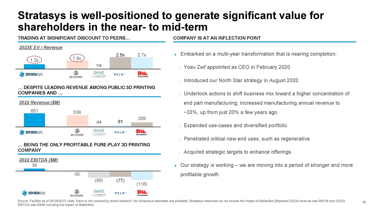 The following investor presentation was made available by Stratasys Ltd. to certain of its investors on May 31, 2023.