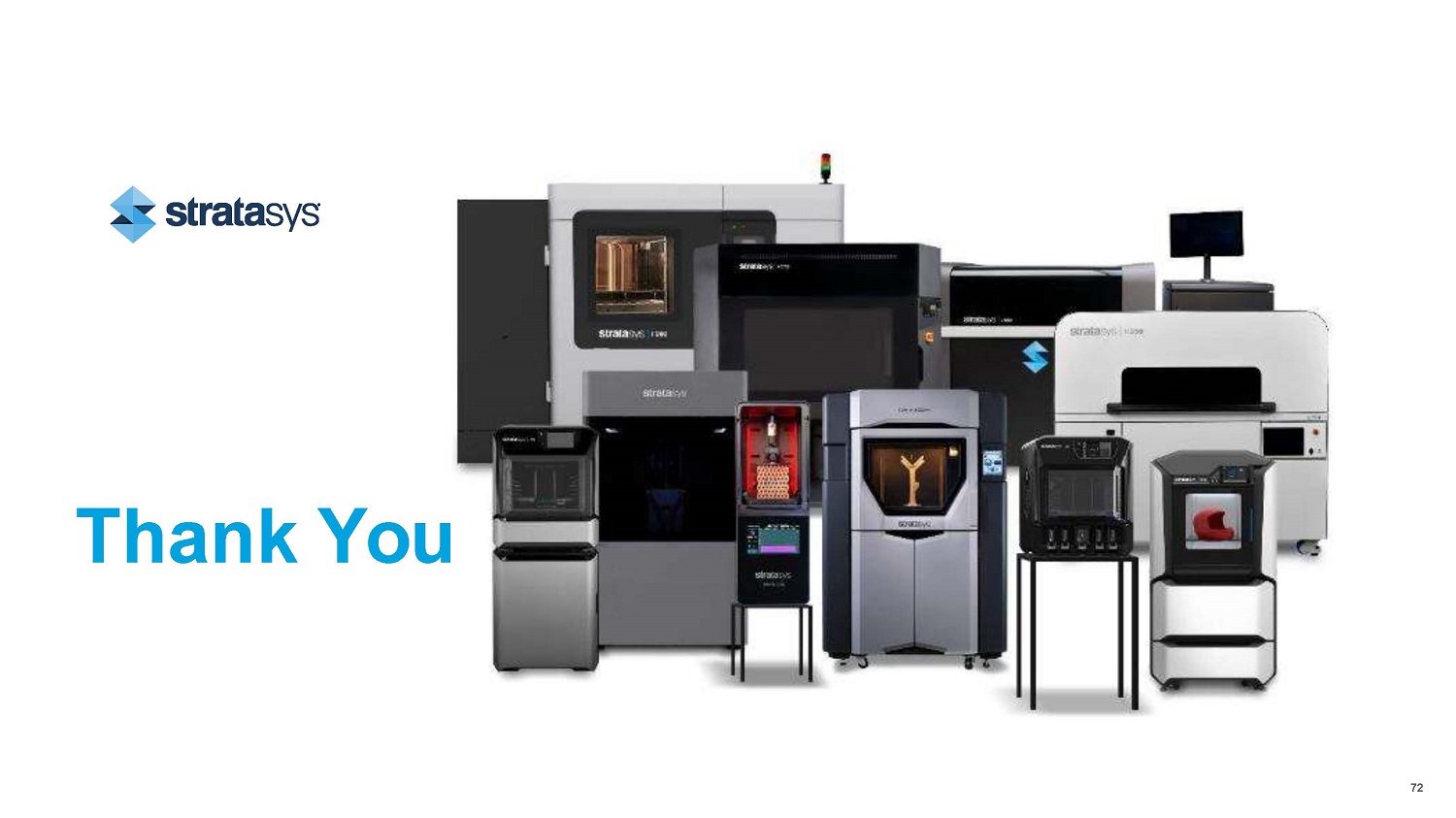 This document contains forward-looking statements that involve risks, uncertainties and assumptions. If the risks or uncertainties ever materialize or the assumptions prove incorrect, the actual results of Stratasys Ltd. and its consolidated subsidiaries (“Stratasys”) may differ materially from those expressed or implied by such forward-looking statements and assumptions. All statements other than statements of historical fact are statements that could be deemed forward-looking statements.