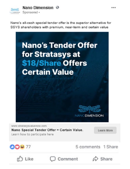 On June 21, 2023, Nano Dimension Ltd. posted the following message on Facebook: