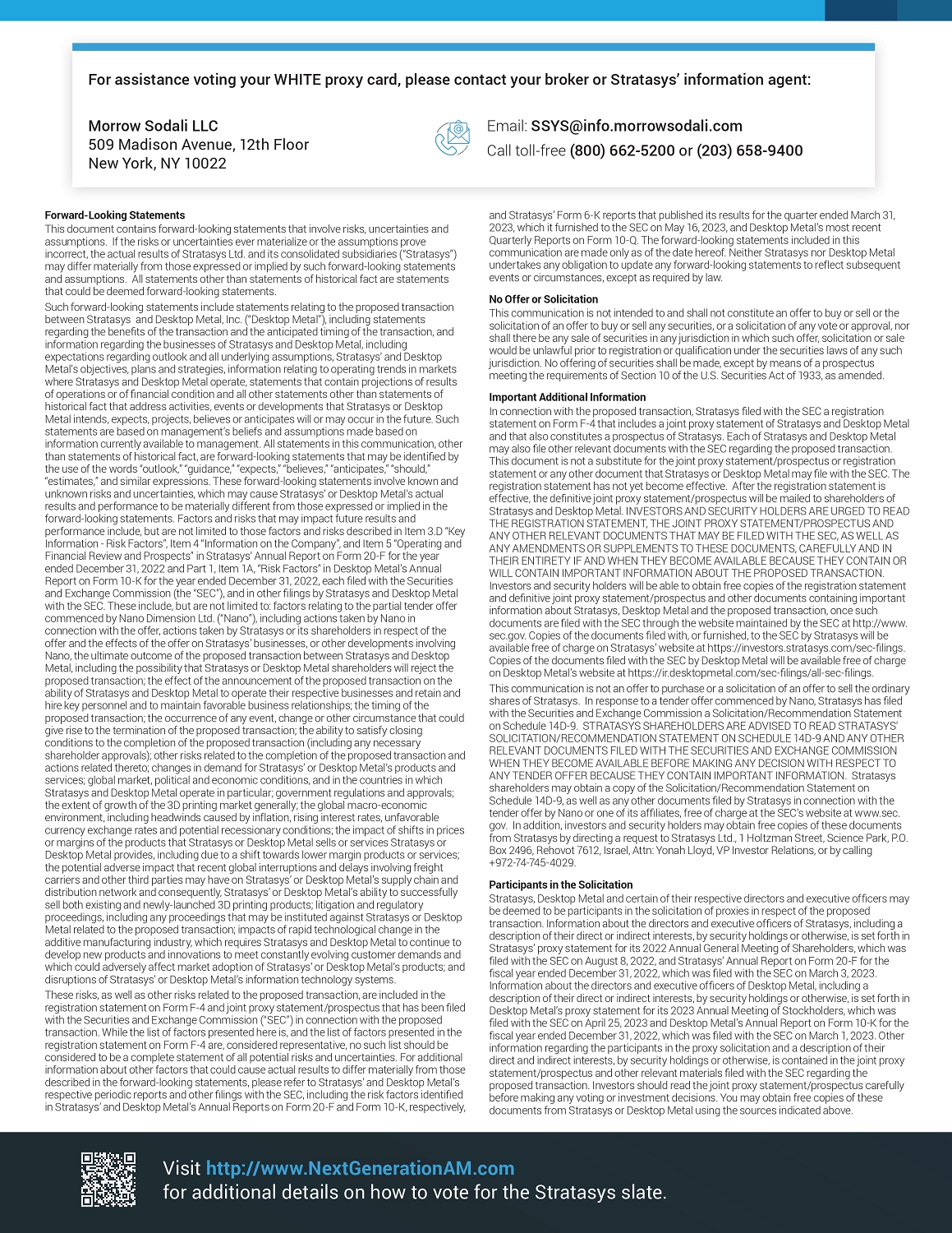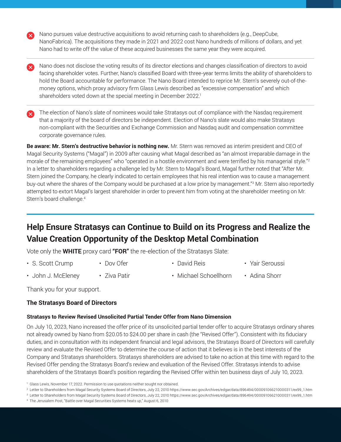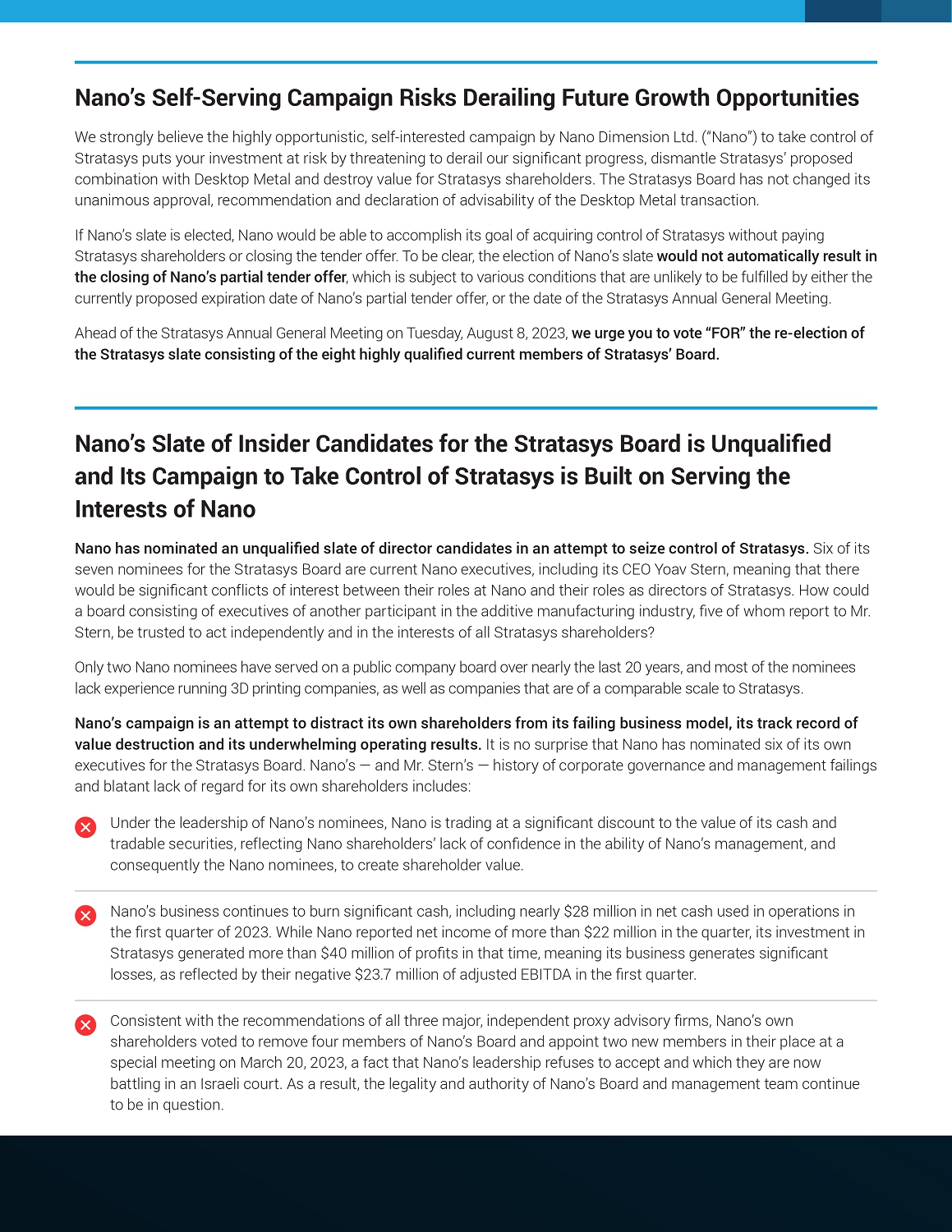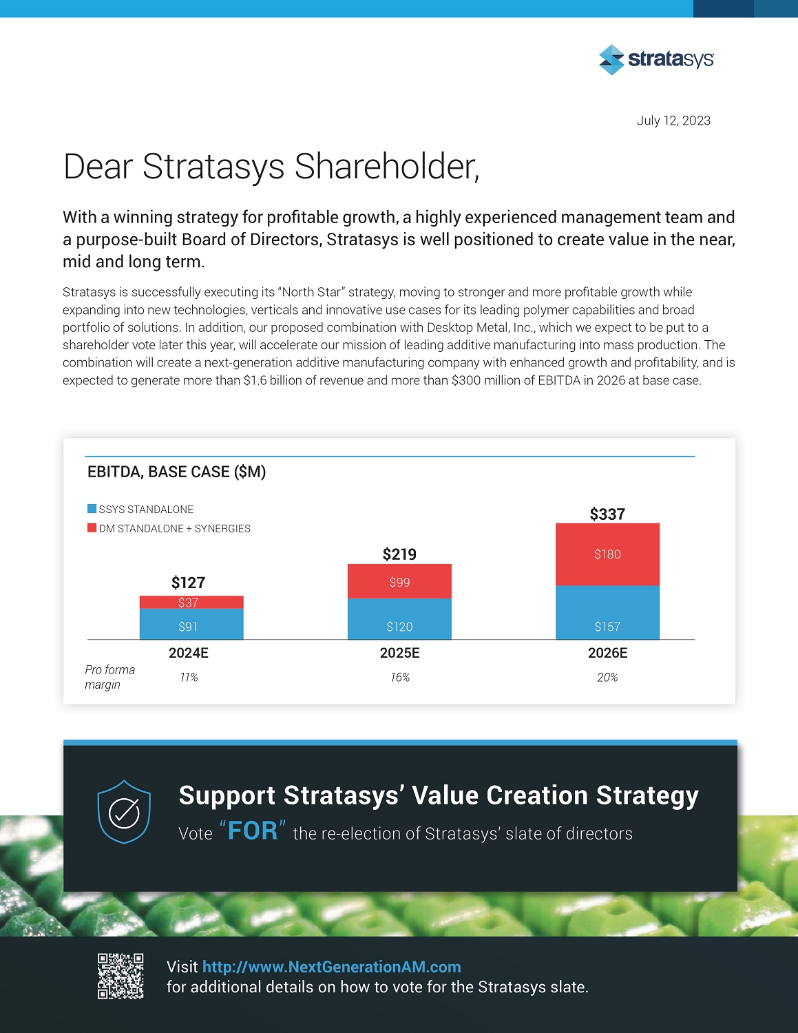 The following letter was sent to shareholders of Stratasys Ltd. on July 12, 2023.