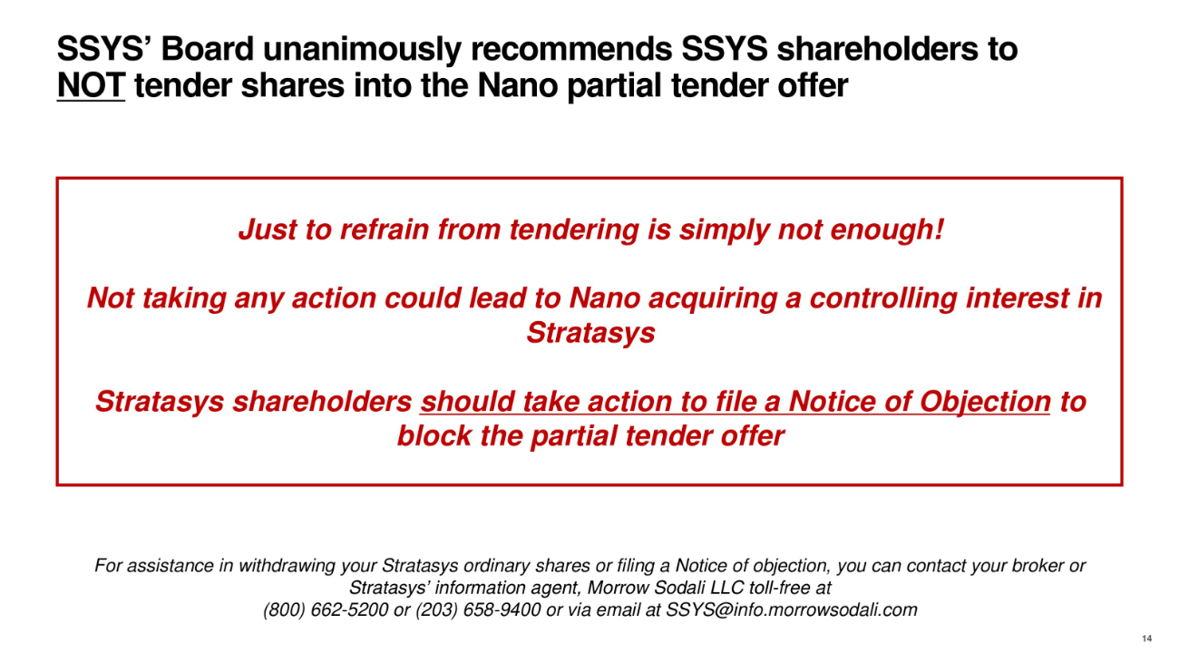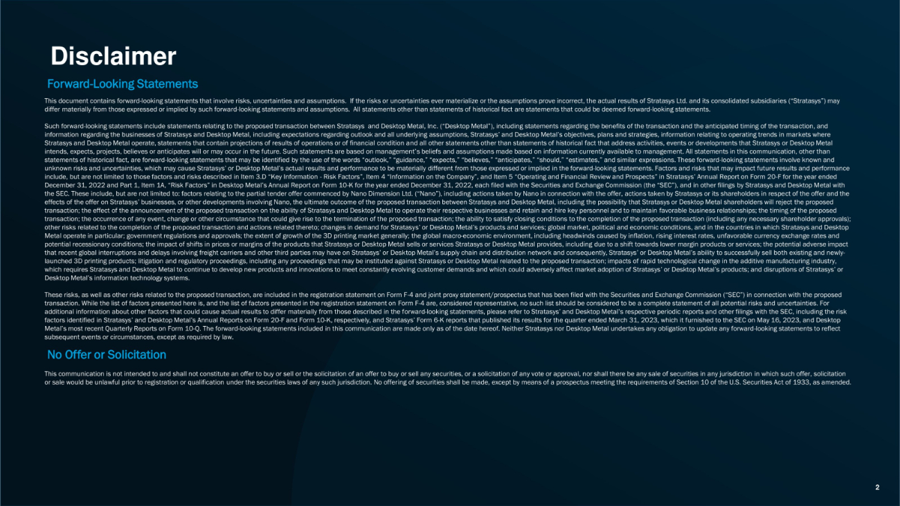 The following presentation was made available on the Stratsys Ltd. investor relations website (https://investors.stratasys.com/) and the Stratasys Ltd. and Desktop Metal, Inc. website (https://www.nextgenerationam.com) on July 17, 2023.
