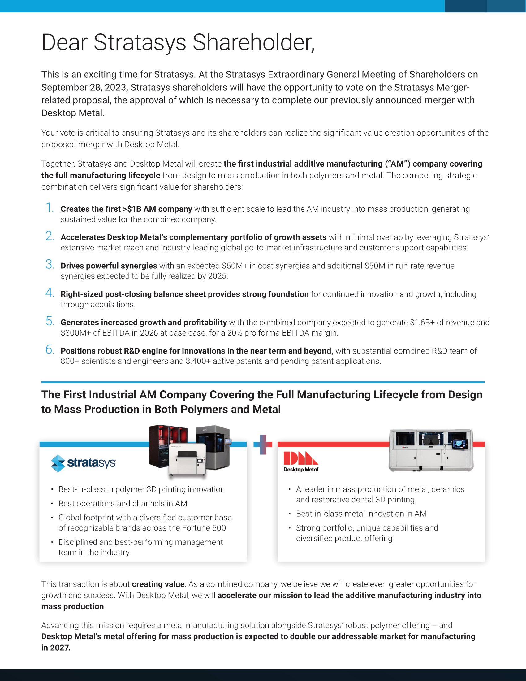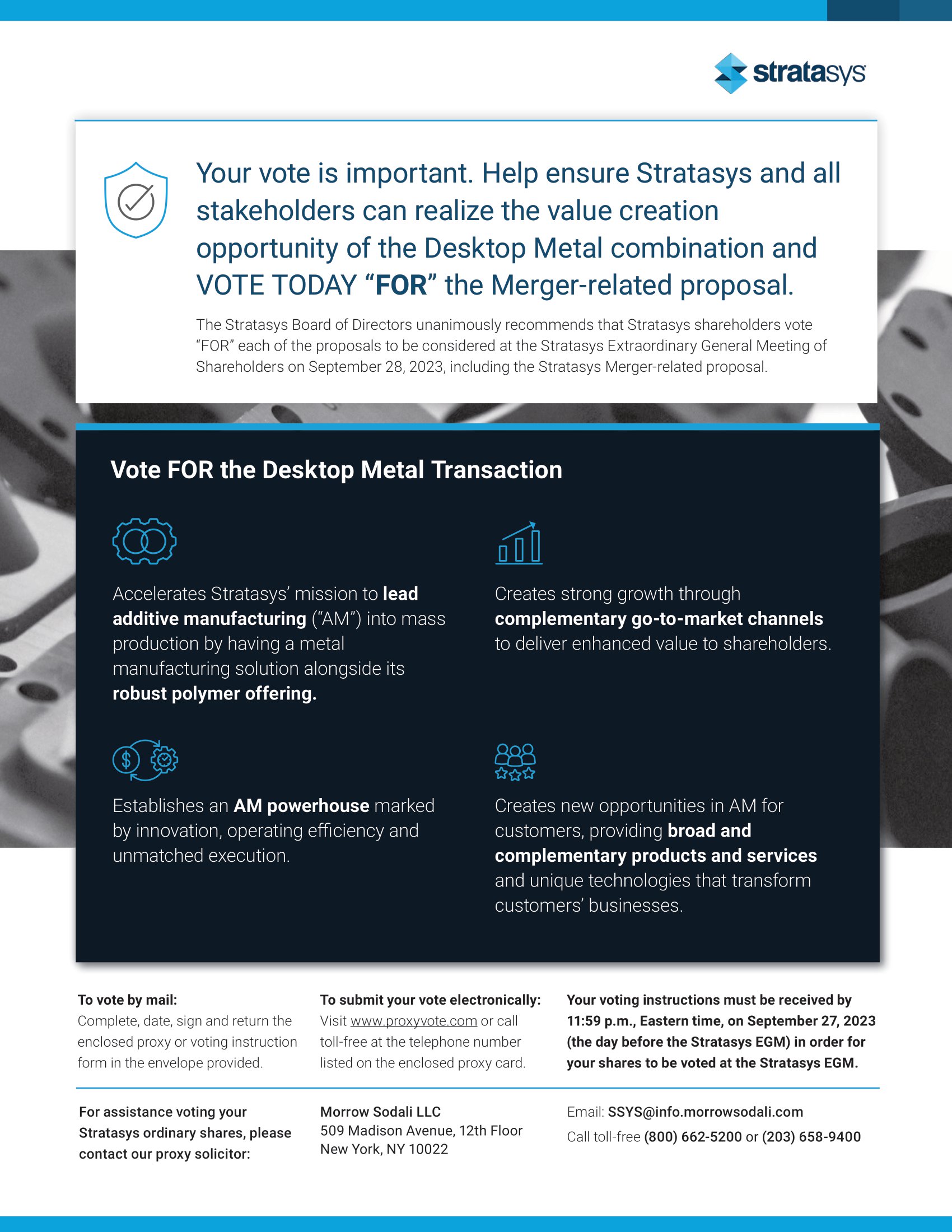 The following letter was sent to shareholders of Stratasys Ltd. on September 5, 2023.