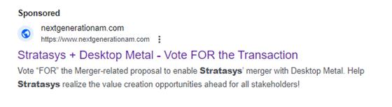 proxy statement/prospectus was mailed to shareholders of Stratasys and Desktop Metal on or around August 28, 2023. Each of Stratasys